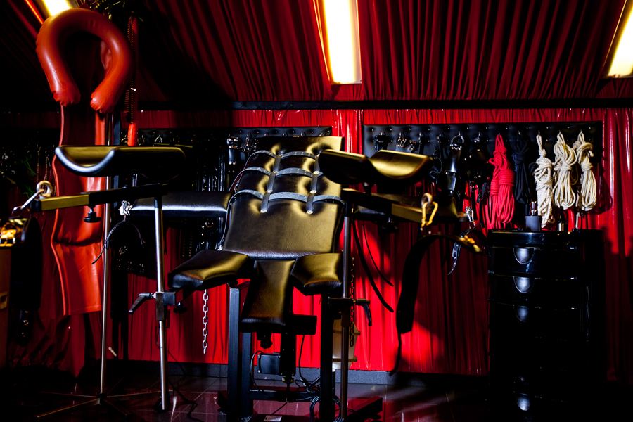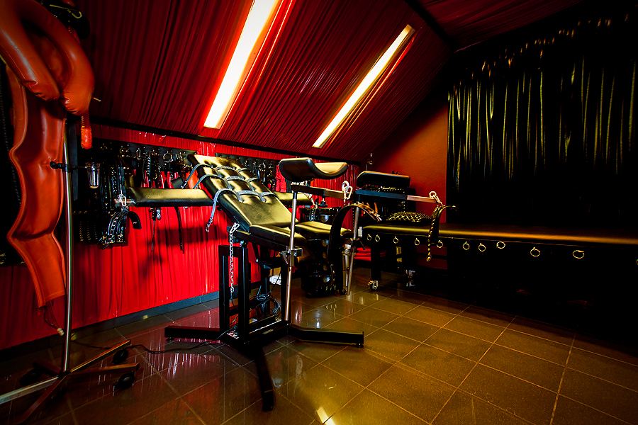 In unserer Latex-Klinik befindet sich das Kronjuwel unser "Boomer", ein extrem bequemer und zugleich restriktiver Gynstuhl der Marke "Style-Fetish" hier ist die Fixierung bis in die Fingerspitzen machbar. In diesem Playroom befindet sich ebenfalls eine breit gepolsterte Untersuchungsliege die diverse Varianten der Fesselung ermöglicht. Natürlich ist unsere Gummi-Klinik so ausgestattet das auch klassische Klinikerotiker auf ihre Kosten kommen. Die indirekte Beleuchtung sowie die an den Wänden befindlichen Gummimasken machen den gewissen Charme unserer Latex-Klinik aus.