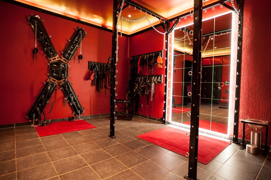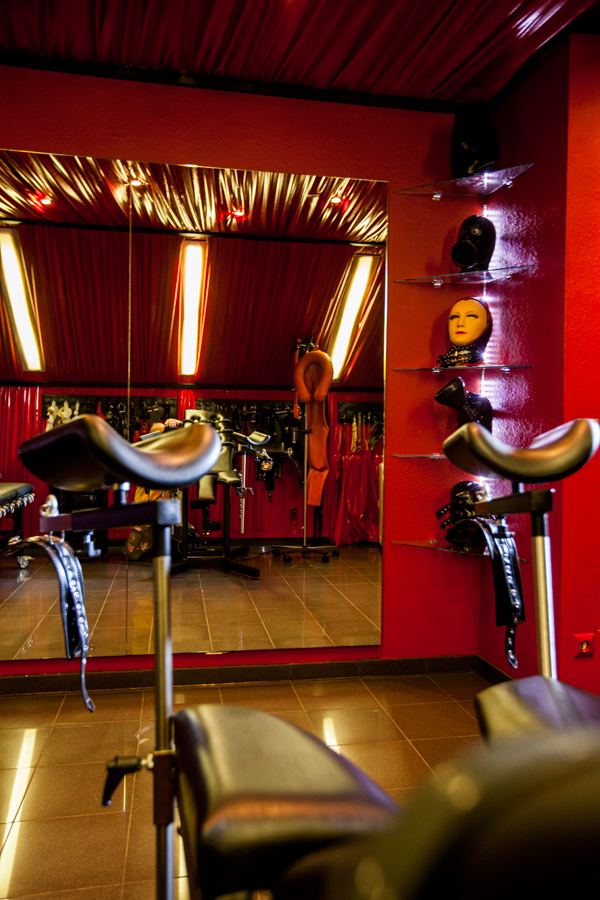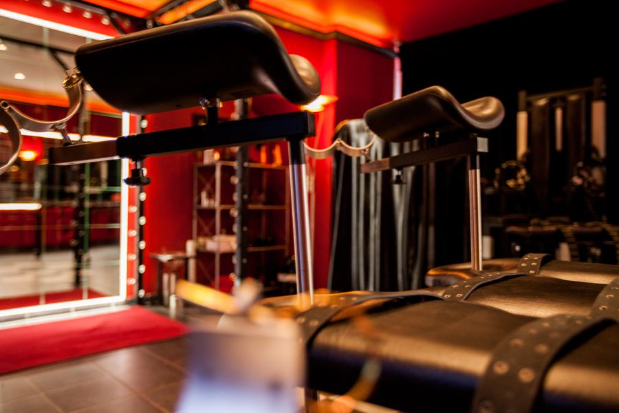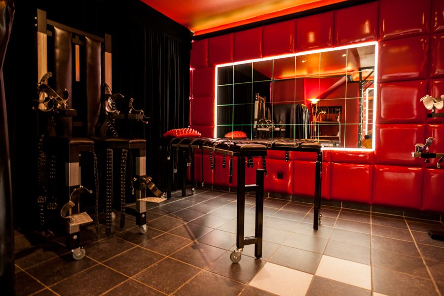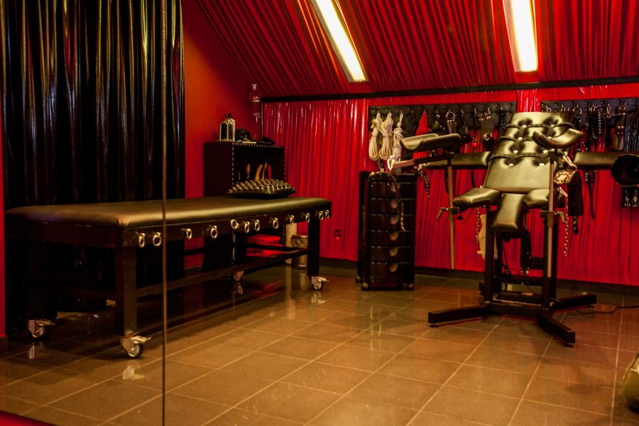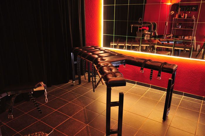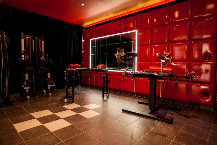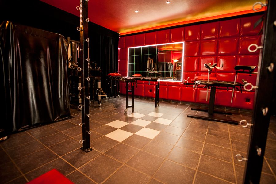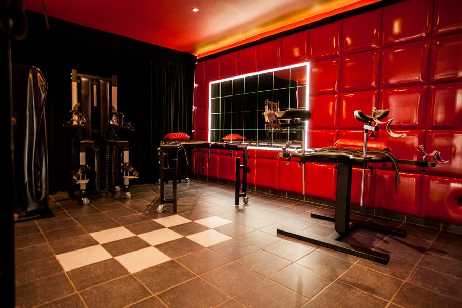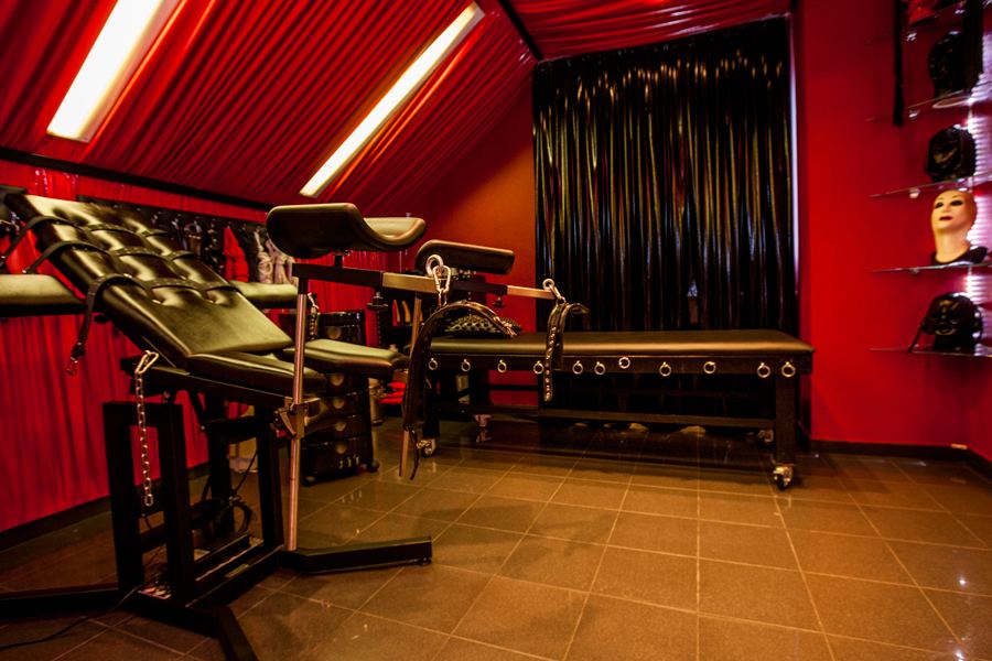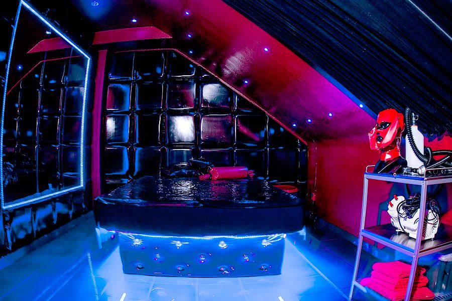 Selbstverständlich sind in allen unserer Latex-Playrooms themenbezogen das gesamte Equipment auch aus Latex - angefangen von den Hand-und Fußfesseln über das Halsband bis hin zur Augenmaske und die gummierten Knebel in allen möglichen Variationen. Natürlich befinden sich auch hier die gängigen BDSM-Spielzeuge: Bondageseile, Gewichte, Nippelklammern um nur einiges zu nennen. Alle Themenräume sind verspiegelt und klimatisiert!