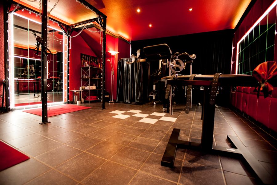 Unsere Latexetage ist mit ihren 3 vollwertig ausgestatteten Räumen, das Latex Highlight für alle Latex Fetischisten. Der großzügigste der 3 Latex Playrooms ist unsere Latexsuite, die mit allem was das Gummi-Herz begehrt ausgestattet ist. Hier erlebt Ihr unseren riesigen Latexcube, dieser ermöglicht es, Dreidimensional in Latex ein Vakuum zu erleben. Weitere Besonderheiten dieses Themenzimmers sind der Fesselstuhl, ein riesiges Fesselgestell sowie ein drehbarer Liegestuhl auf dem man breitbeinig fixiert werden kann. Etwas komfortabler wird es auf unserer gut gepolsterten Y-Liege, auch hier sind zahlreiche Fixierungen möglich. Der absolute Klassiker darf natürlich hier auch nicht fehlen: Das Andreaskreuz! Direkt angrenzend an diesen Raum ist der Kerker der ebenfalls komplett in Gummi ausgekleidet ist. Ein kleiner Vorraum bietet einen Einblick auf unsere zahlreichen Funktionsmasken, zusätzlich ist hier unser Sarkophag der Firma Rubber Finest das "Must-Have" für jeden Gummi-Liebhaber.