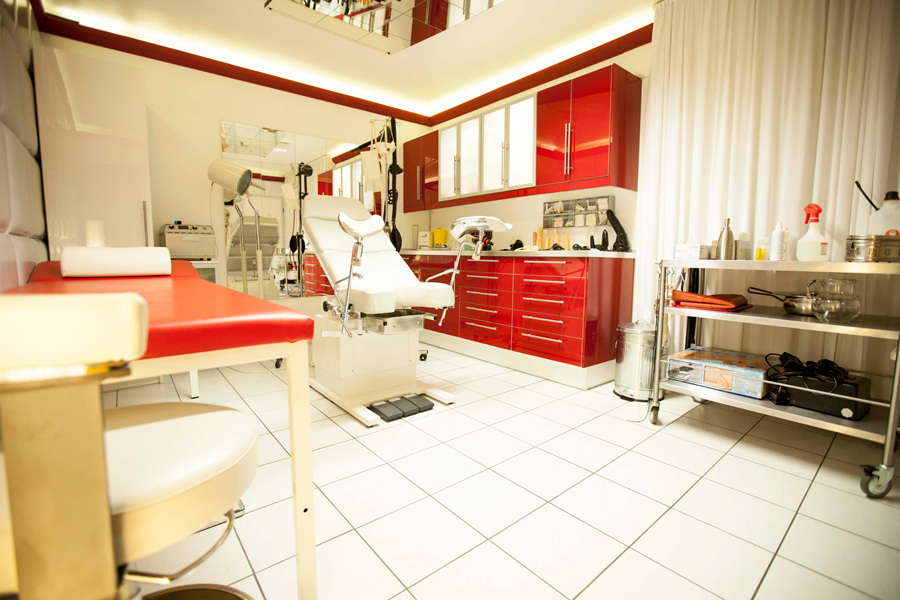 This location is more than just a room – it is an experience for all the senses. The sterile backdrop heightens the tension, the cool aesthetics contrasting with the heat of passion. The smell of latex, the click of metal, the rustle of gloves and the soft whirring of an instrument – here, every sound becomes part of your story.